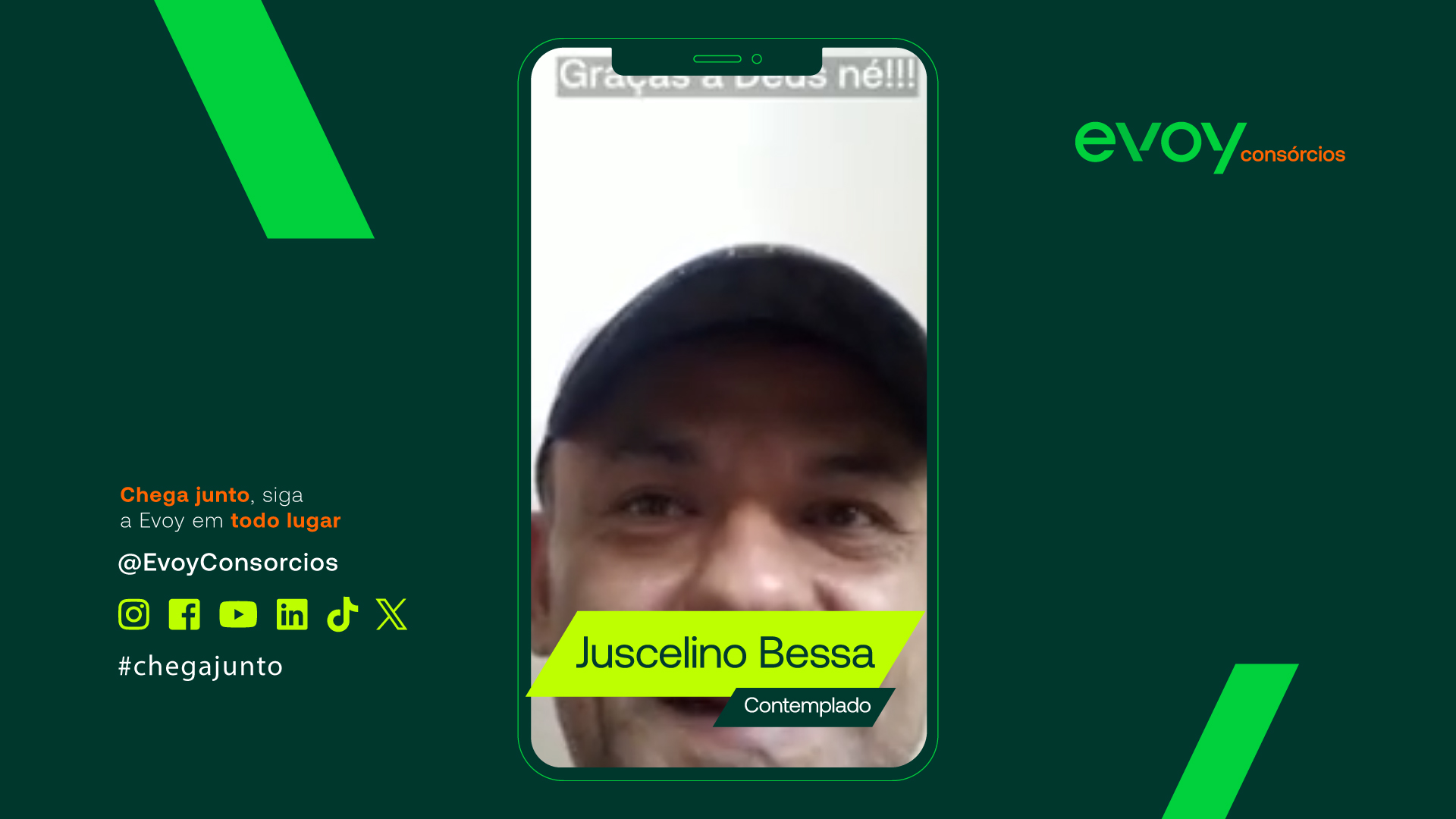 "Sou um dos contemplados da Evoy Consórcios, quero agradecer cada um né da equip...