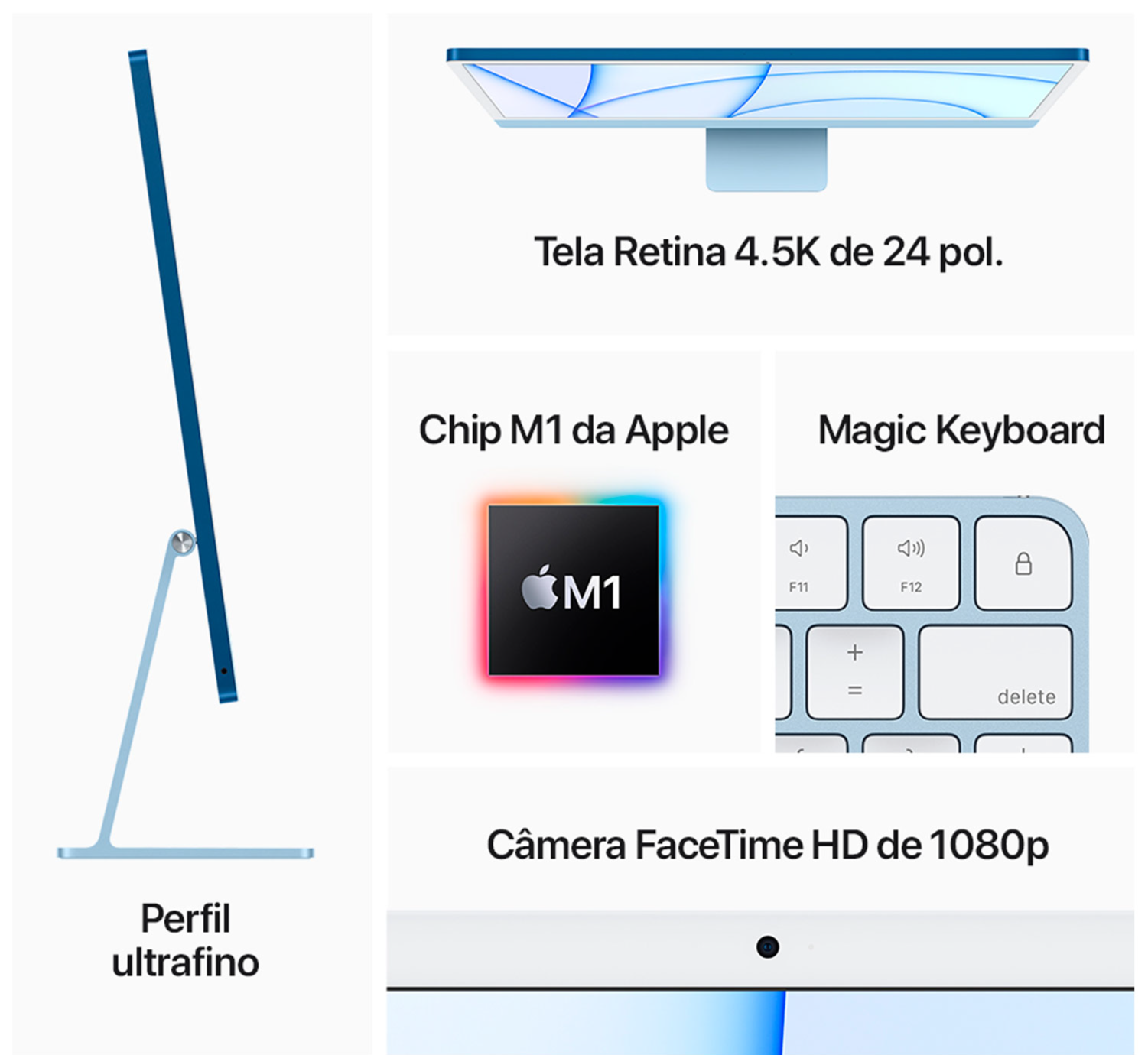 iMac 24, Tela Retina 4.5K Apple, Processador M1 (8GB RAM, 256GB SSD)